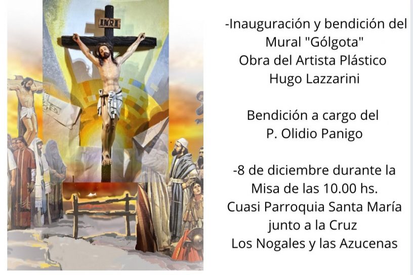 El padre Olidio Panigo destacó las características del mural, que mide 6 metros de alto por 4,5 metros de ancho y que será bendecido el lunes 8 de diciembre en la misa de las 10.00 hs.