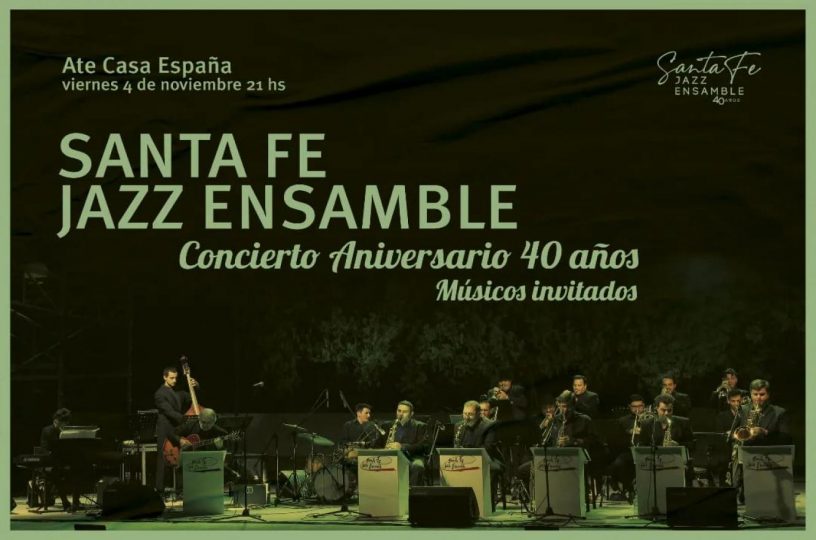 La Santa Fe jazz ensamble celebra más de 40 años de trayectoria con un concierto que brindará en Ate Casa España este viernes 4 de noviembre a las 21. En el marco de la velada, ex integrantes de la orquesta se sumarán a este concierto aniversario.